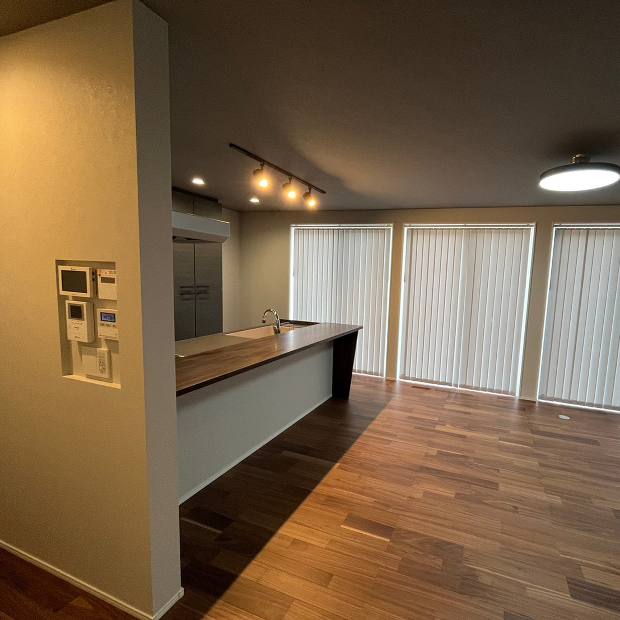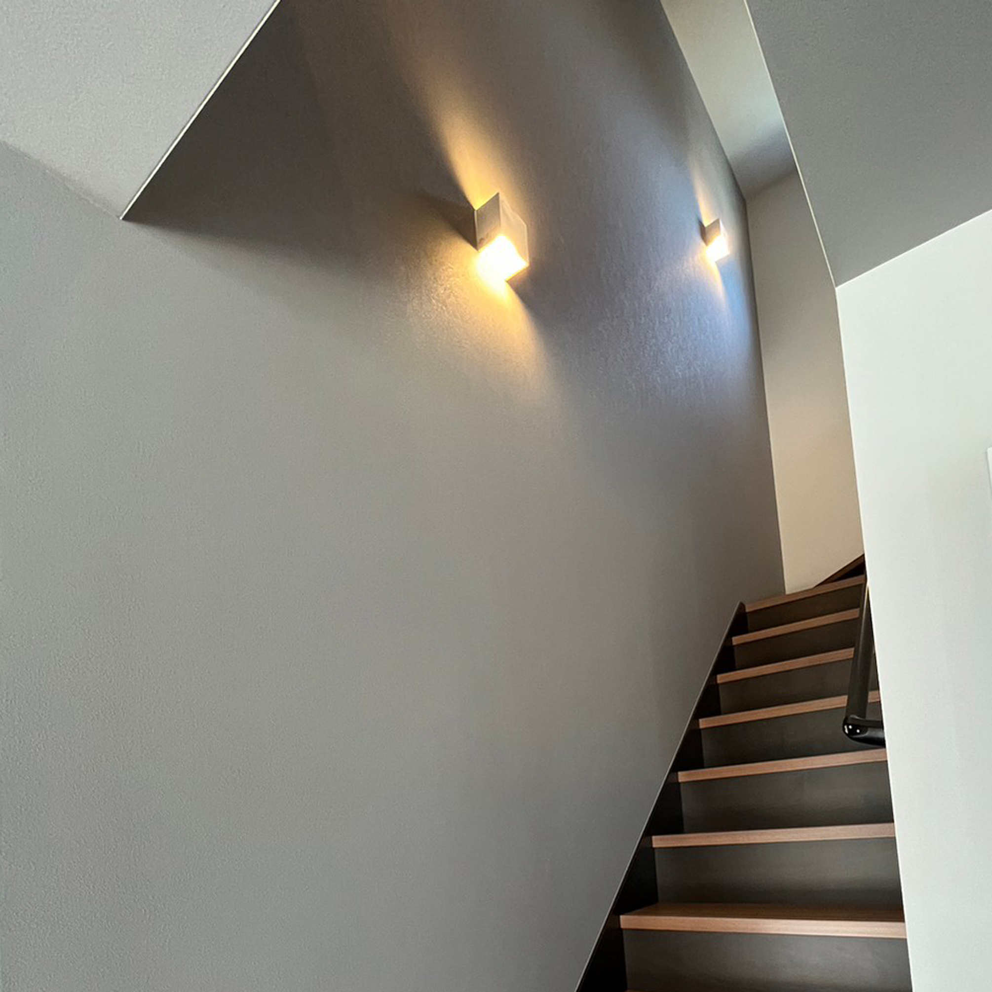 LDKの真ん中に階段があるので、自然と顔を合わせる回数が増え、家族とコミュニケーションがとりやすくなります。間接照明の光が階段をじんわりと照らすので、まるでホテル気分。