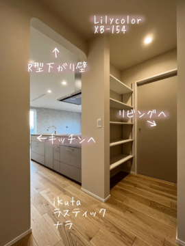 パントリーの下がり壁と同じようにリモコンニッチのコナーを丸い形にしたので一体感があります😙💕
