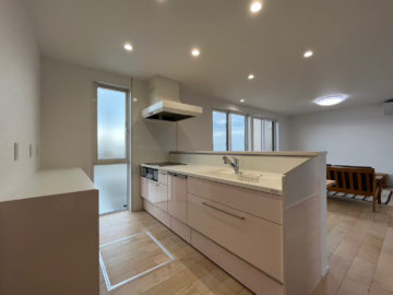 対面キッチンなので、リビングでの様子がわかるお母さんにやさしい間取りです😊